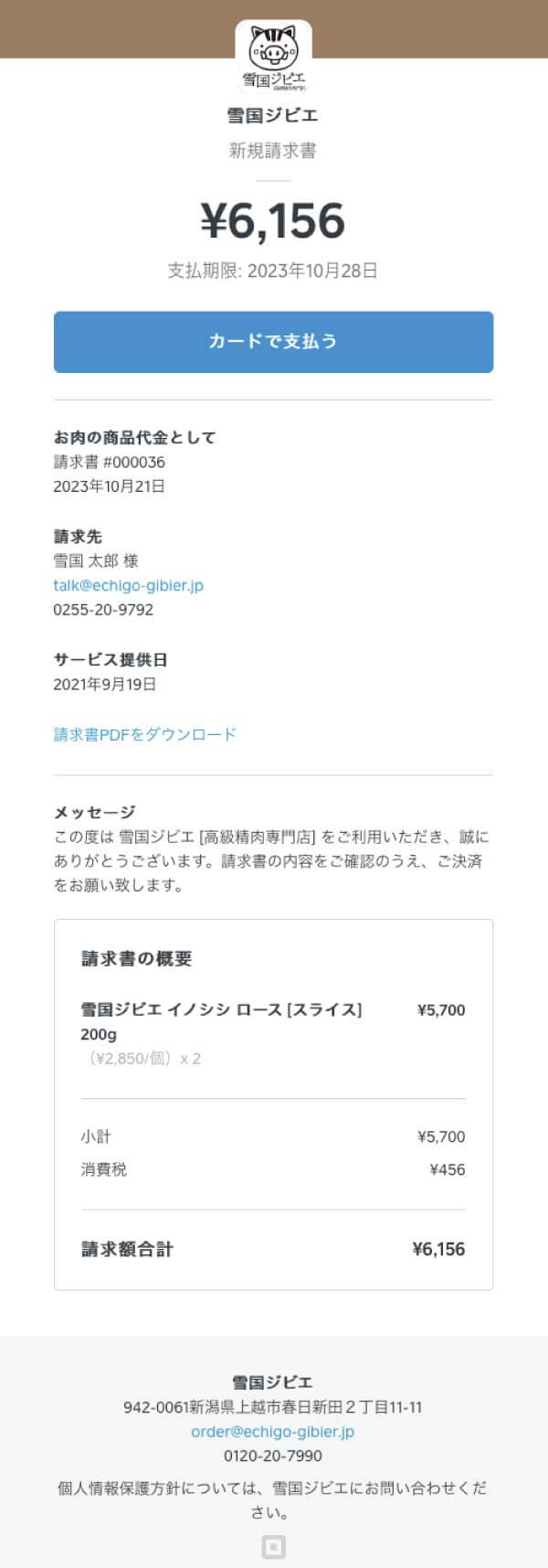 オンライン請求書(左/下の写真)がメールで届きます。 金額表記はお客様のお買物状況によって異なります。