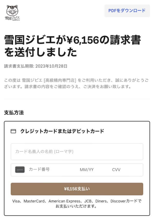 雪国ジビエ公式ストアで、クレジットカードを使いお支払いをご希望される場合は、オンライン請求書でのご決済となります。 クレジットカード決済は代金引換でもご利用可能です。その場合はオンライン請求書ではなく、配達ドライバーが携帯しているカードリーダーを使用したお支払となります。