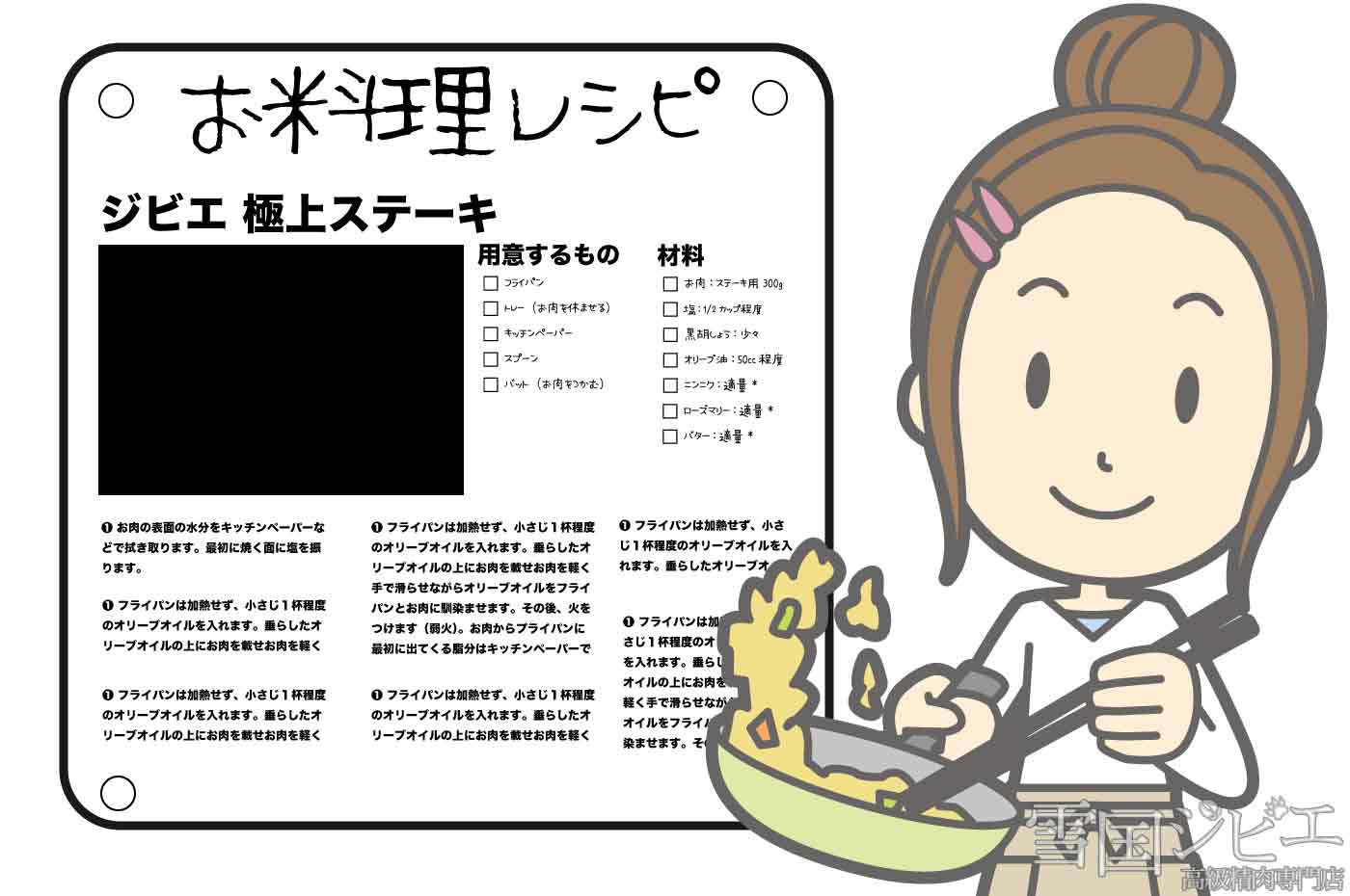 また、冷凍してあるお肉を上手に解凍する方法や、もっと色々なお料理を楽しみたい方には、お料理レシピ集をご用意しております。お料理レシピはコチラよりご覧いただけます。各部位の詳細についてはコチラをご覧ください。